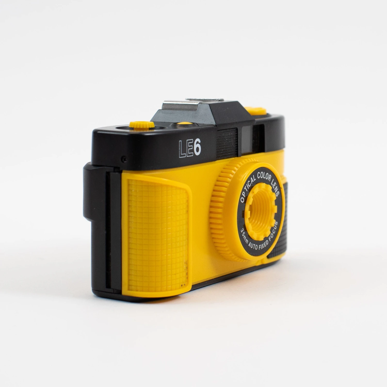The Ultronic LE6 is a fixed focus, point and shoot camera. This camera does not have a flash and will perform best taking photos in good light out of doors with medium-speed film. Think of it as a reloadable disposable camera. Cool vintage yellow color.