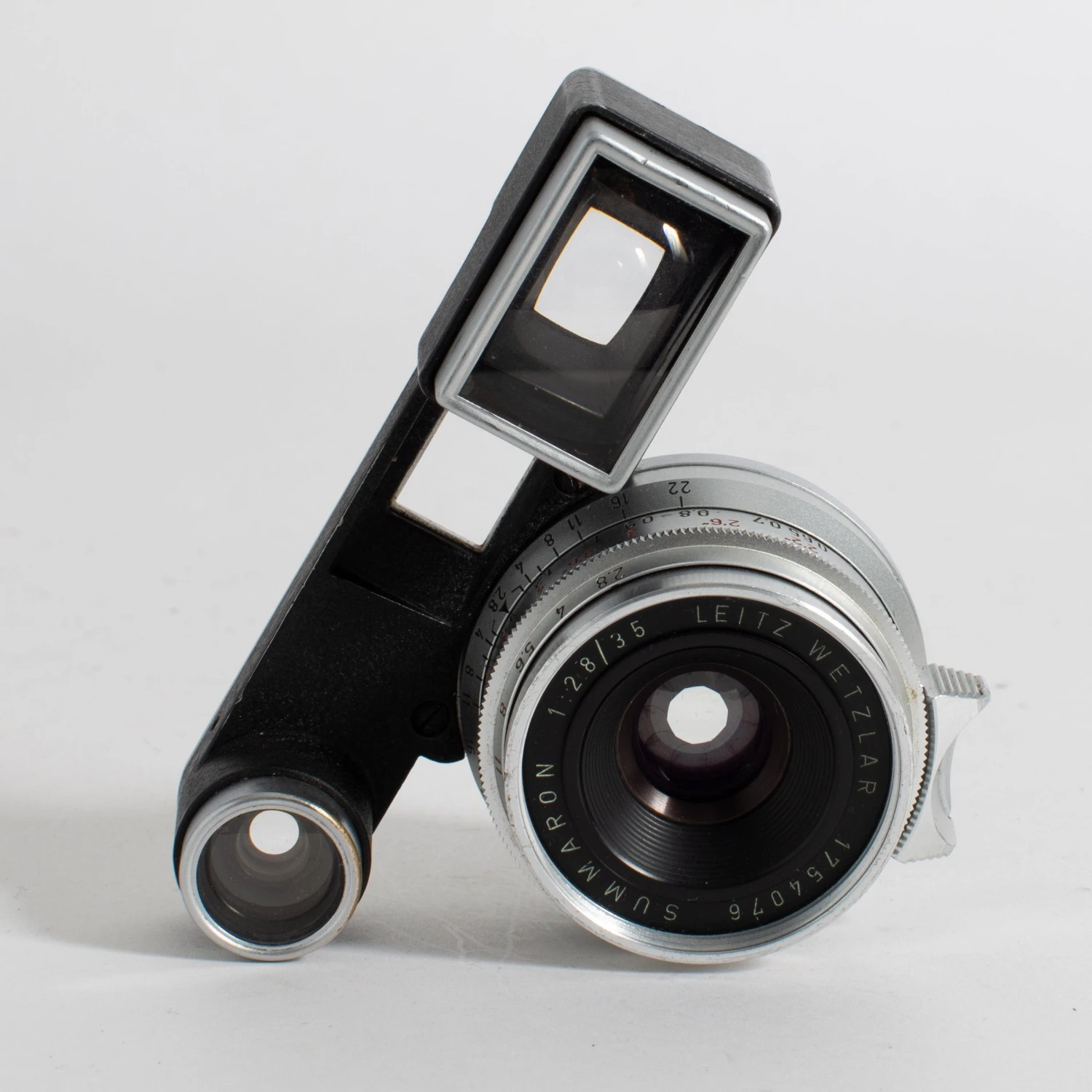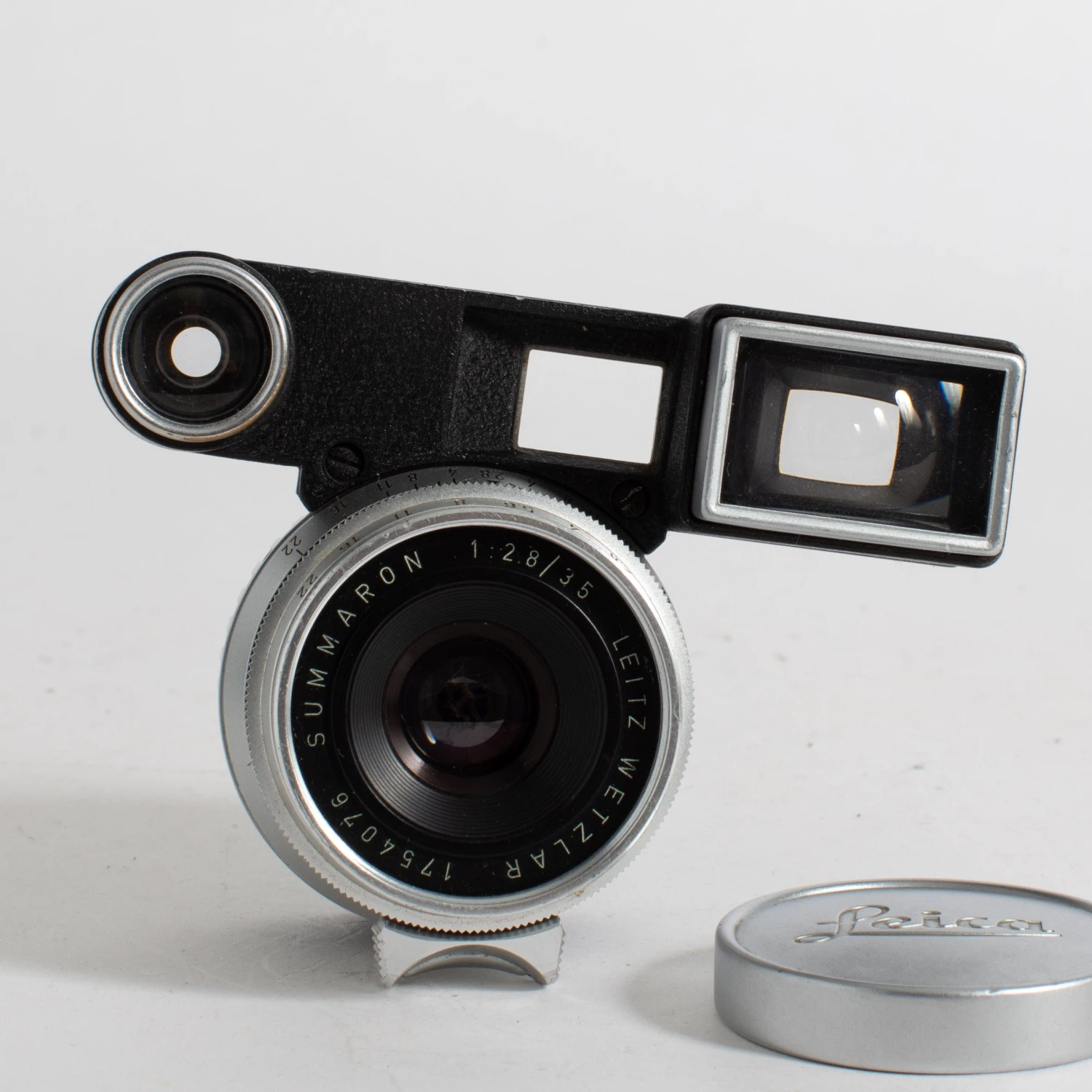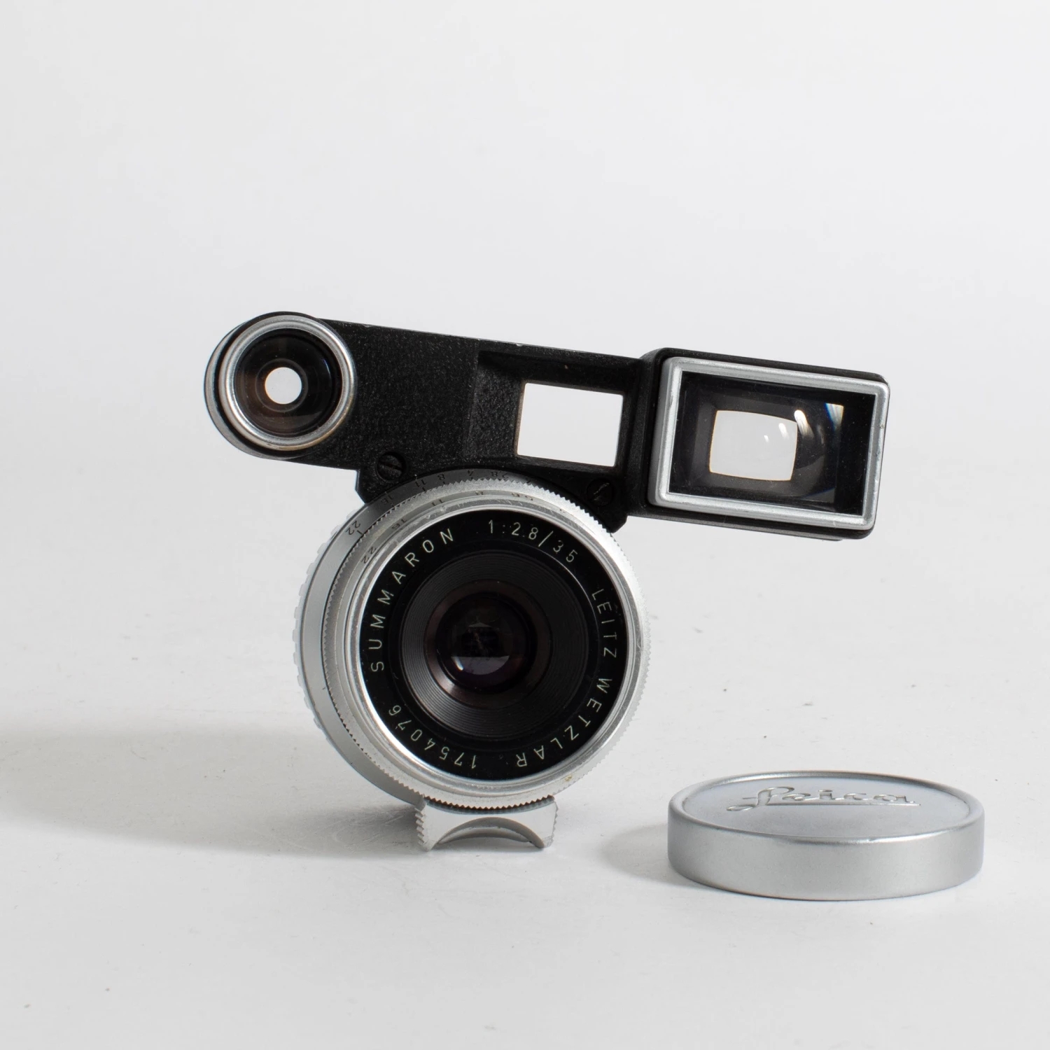This is an M-mount Leitz Wetzlar 35mm Summaron f/2.8. A sharp, lightweight lens with a low profile that’s perfect for street photography. We shot a test roll through this lens paired with the Leica M7 we currently have for sale, but it originally came to us paired with an M3 (also available). This is a very clean lens with some age-appropriate light wear on the black metal finish on the finder attachment, see photos. Glass is very clean.