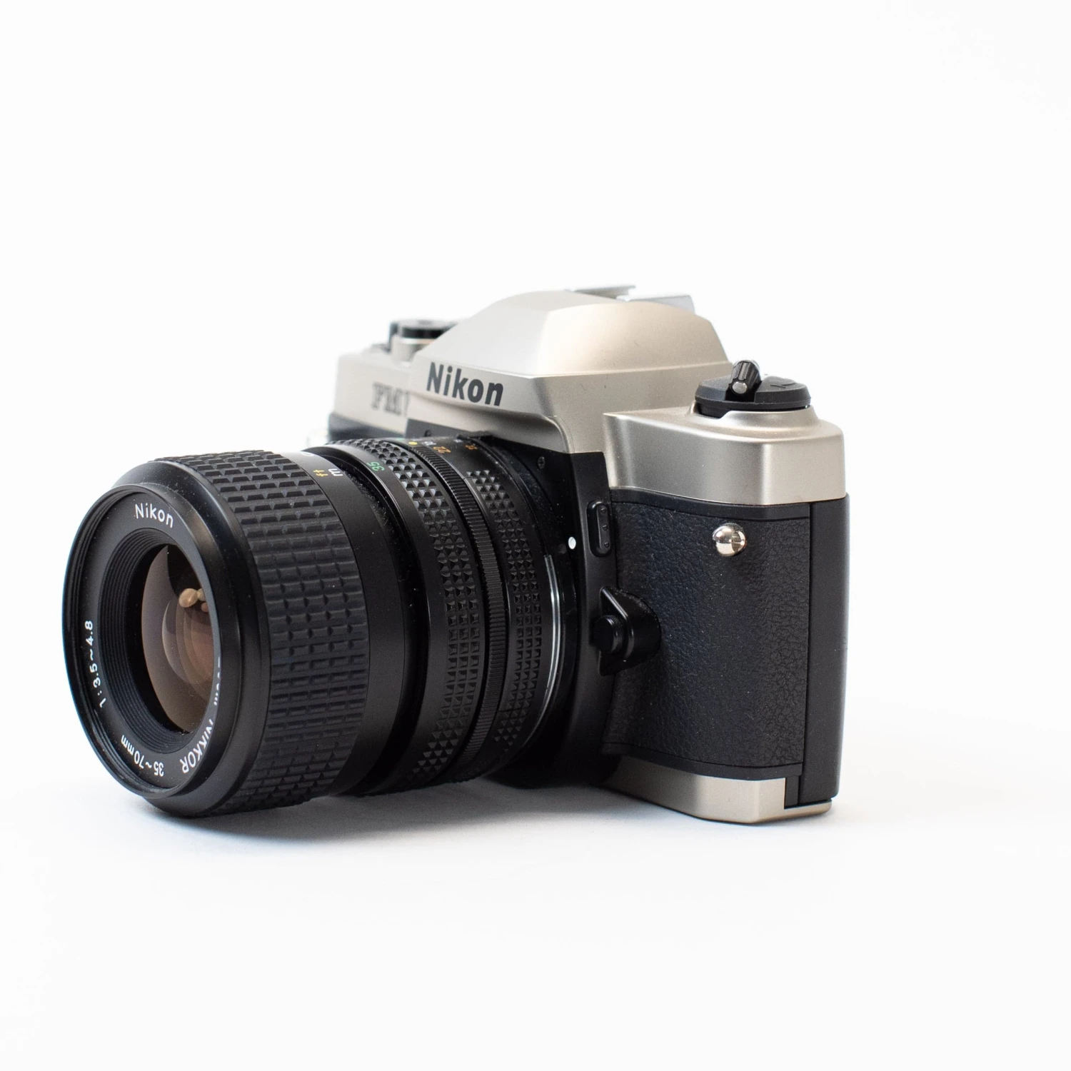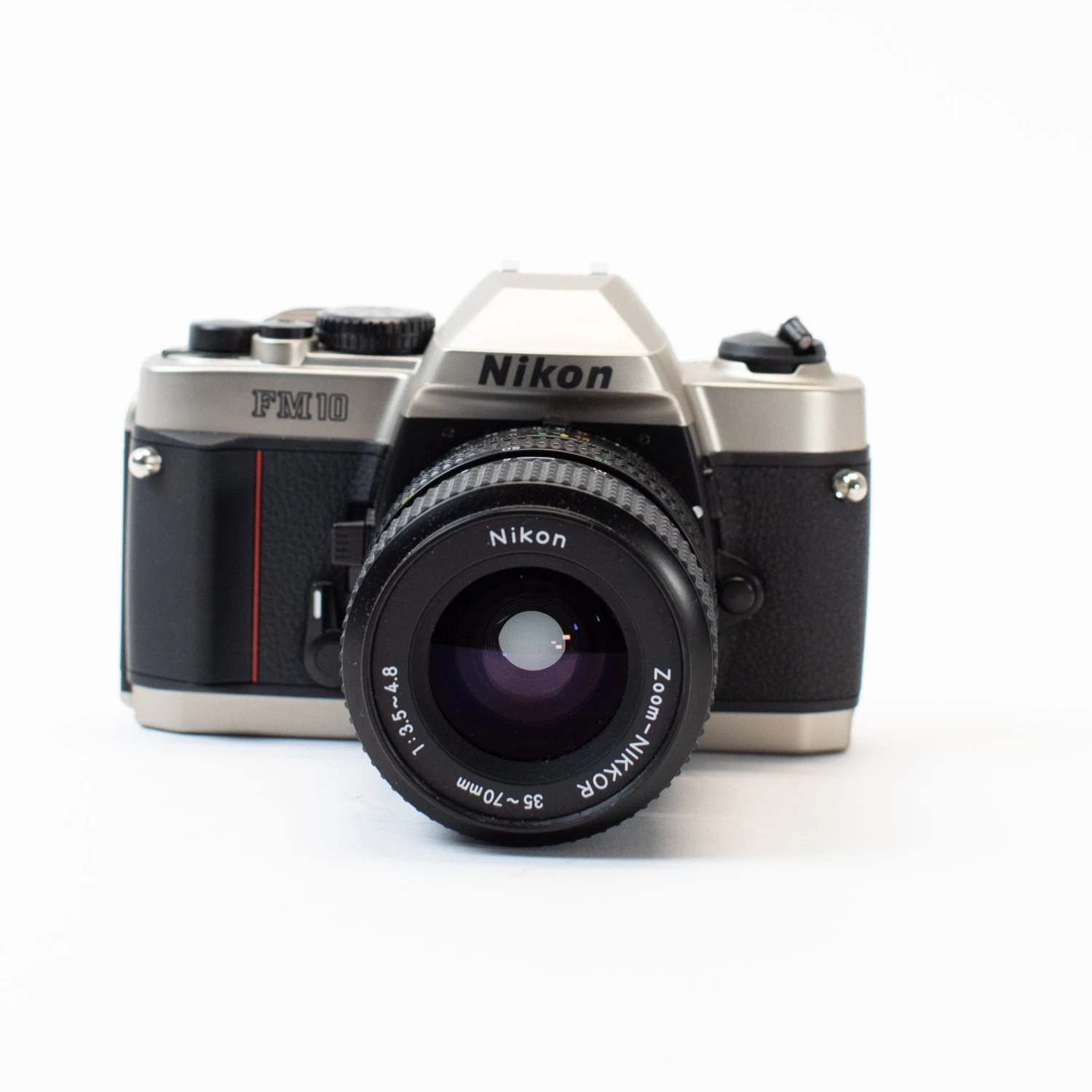 The Nikon FM10 is a manual focus 35 mm film camera formerly sold by Nikon Corporation. It is of SLR design and was first available in 1995. It is normally sold in a kit that includes a Zoom Nikkor 35–70 mm f/3.5-4.8 zoom lens, although a Zoom Nikkor 70–210 mm f/4.5-5.6 zoom lens is also available. An electronic companion model known as the FE10 was also sold at one stage.