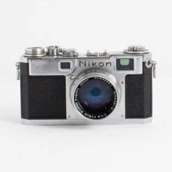 Set your ISO, aperture, and shutter speed using the slim dials on the front face of the camera (you read them looking down from the top) and use the built-in needle-match light meter if you don’t have a handheld meter handy. The camera uses distance estimation to focus via its sharp, 40mm f/3.5 Tessar lens. Comes with a UV filter, lens hood, original wrist strap, and original leather pouch.