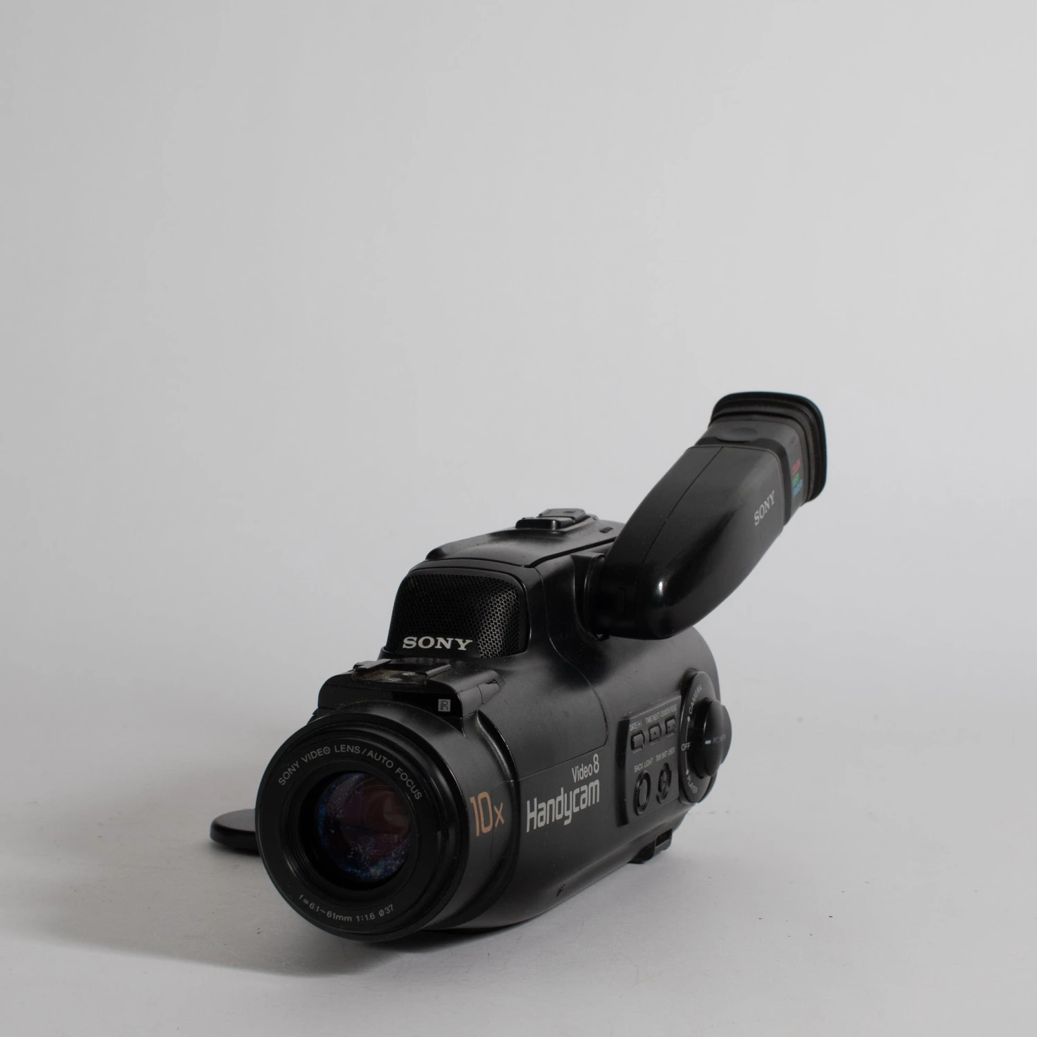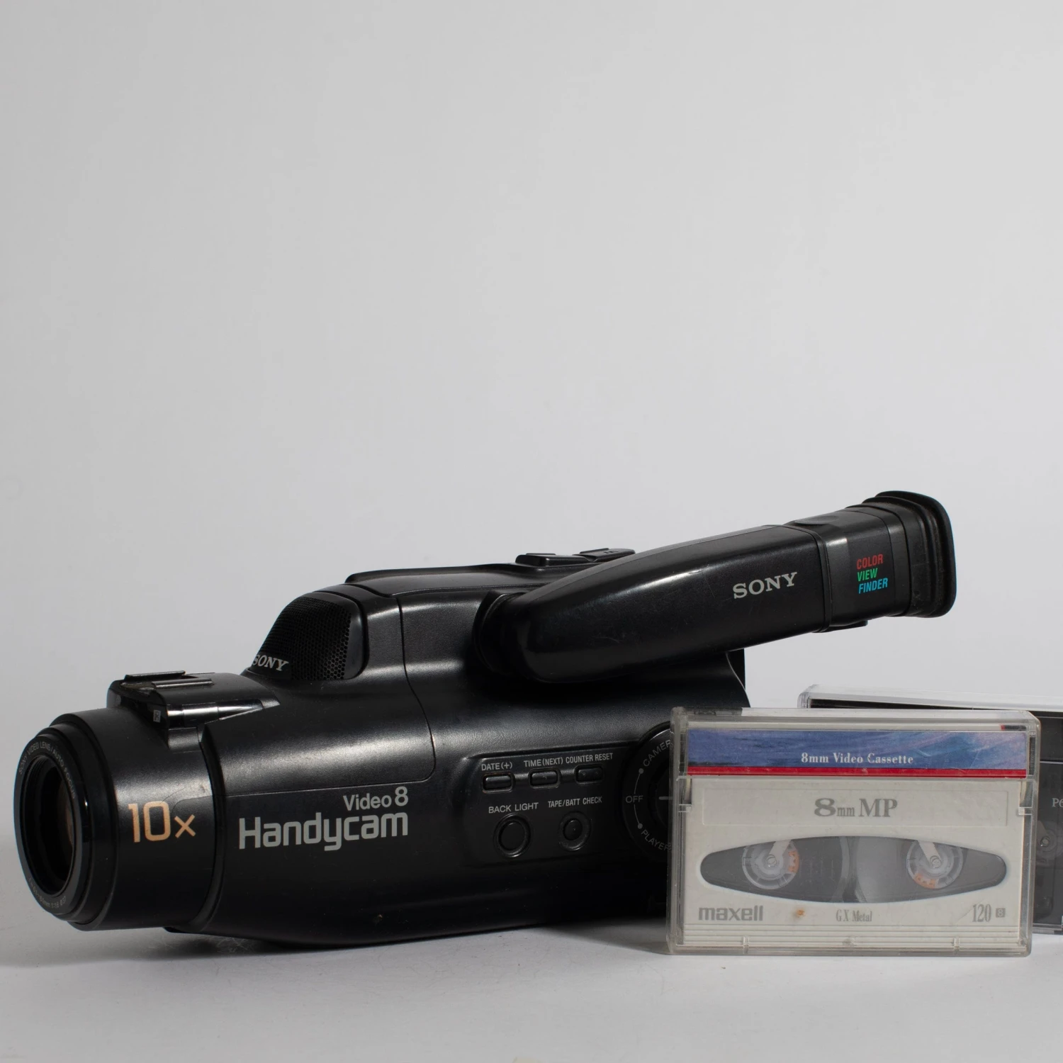 Lend some authentic, vintage texture to your video projects with this vintage Sony Video 8 Handycam video camera. Takes 8mm video cassette tapes.