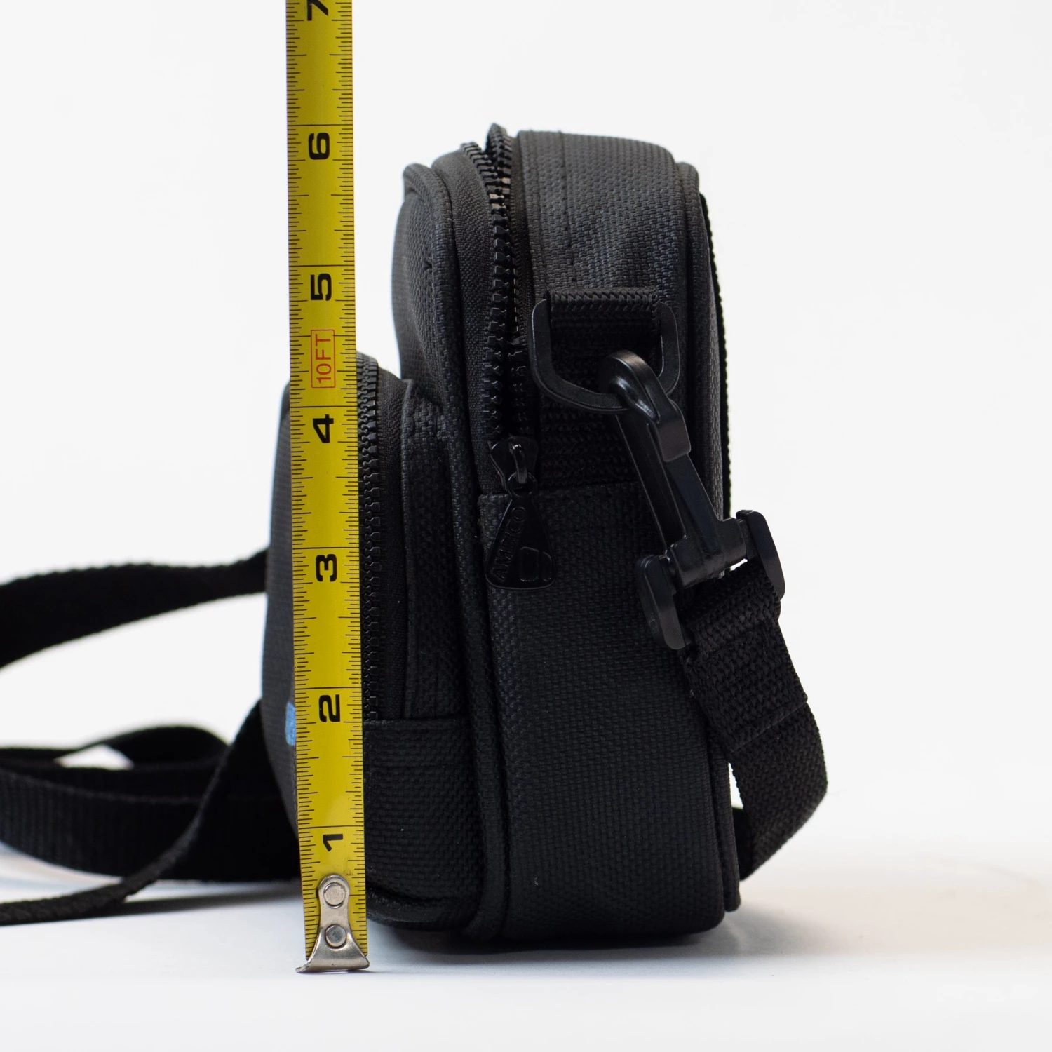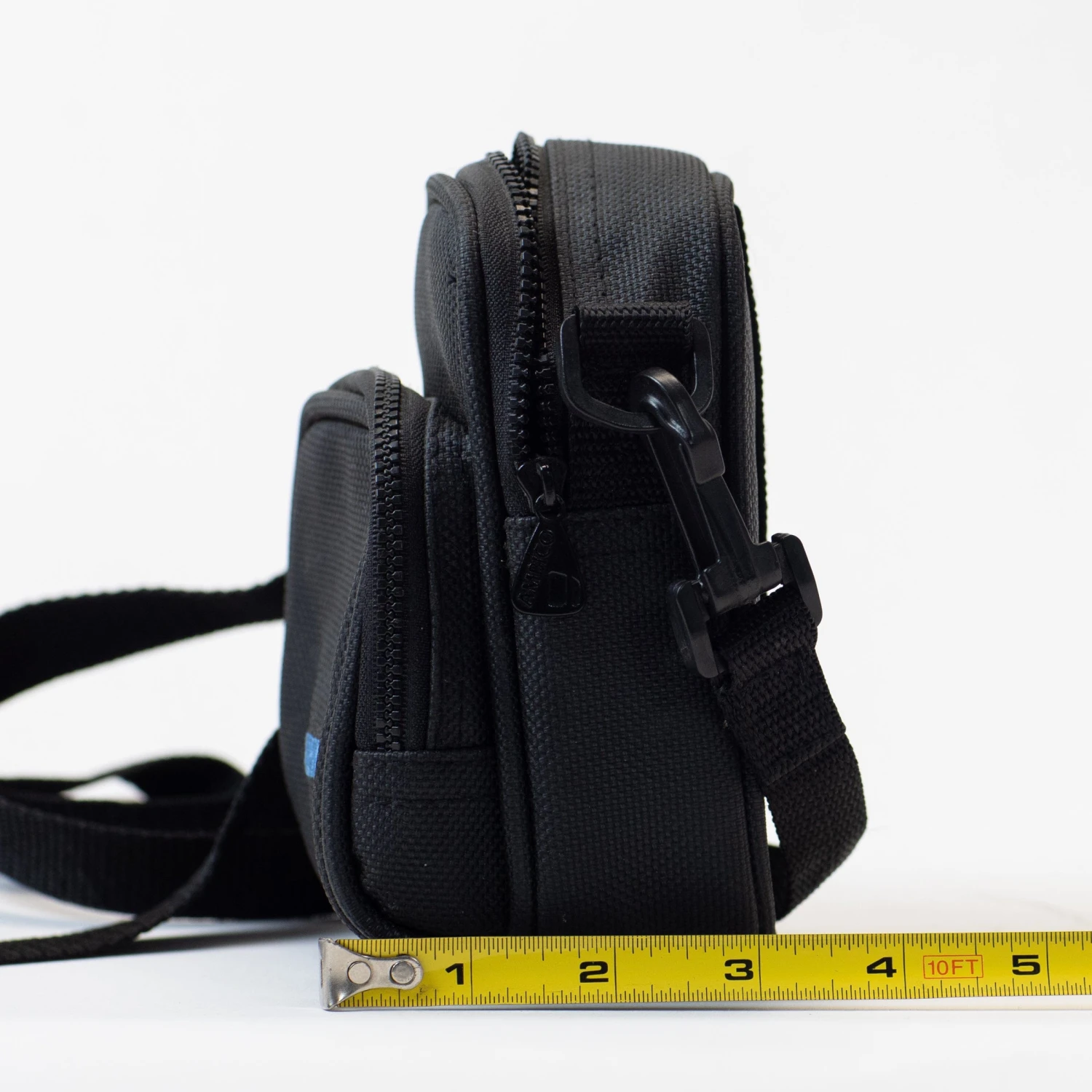 See photos for dimensions; bag is roughly 6″ high and 3 1/2″ wide. We recommend measuring your gear.