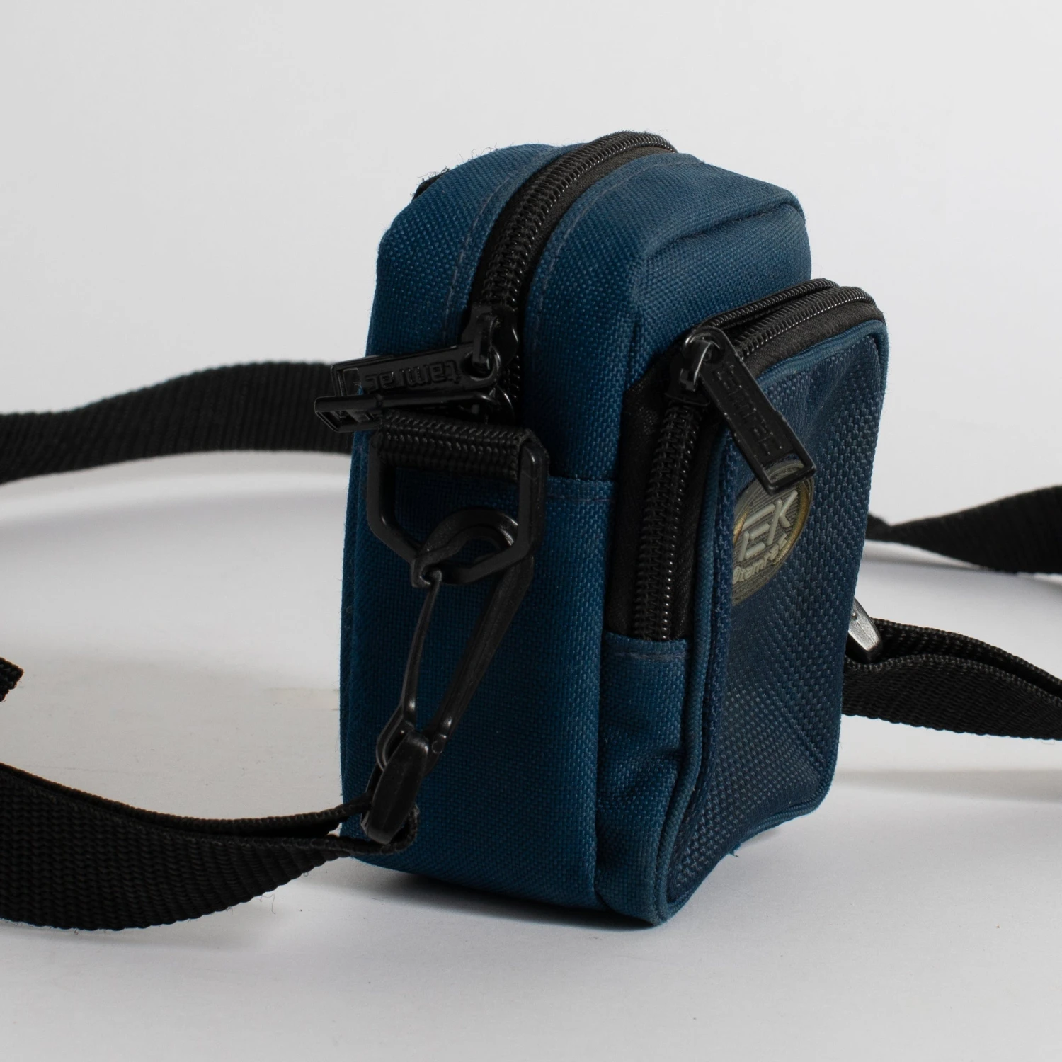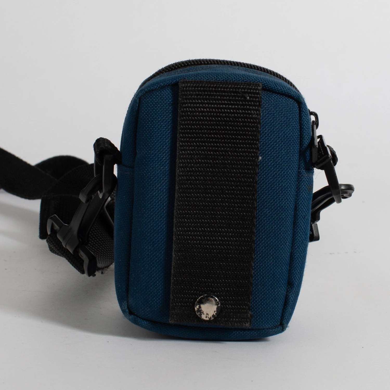 This vintage pouch was made to fit a point and shoot camera and has a front zippered compartment to carry a few rolls of film. The strap can be disconnected from the pouch and there is a belt loop on the back side of the pouch.